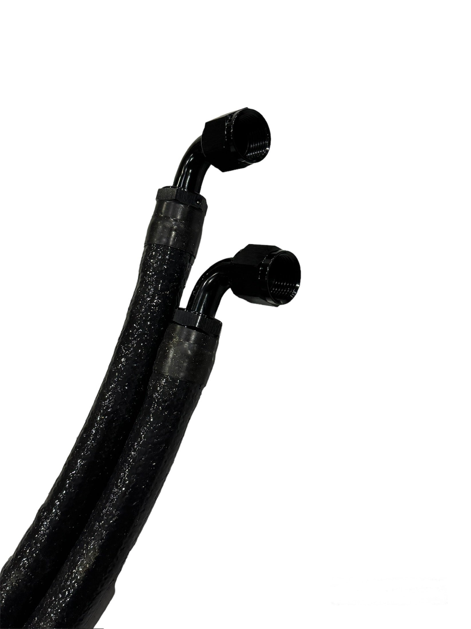 This oil filter relocation kit allows for you to move your oil filter in your LS swapped vehicle to a more convenient location. This relocation kit features (2) 31'' high burst strength braided -10AN lines with 15'' of heat resistant covering, directional filter boss, 13/16'' nipple for stock filter use. All swivel connected fittings included are hydraulically clamped for guaranteed no leak service. Collins oil filter relocation kit is for all LS engine swaps in Infiniti 350Z, Infiniti G35 and Nissan 240SX S-Chassis oil pans.